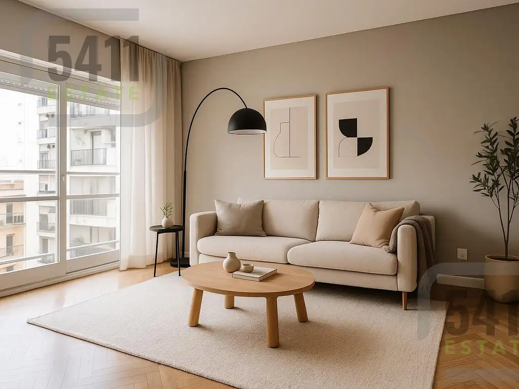 Living-comedor amplio con balcón corrido sobre Av. Cabildo y vista abierta los ventanales DVH hacen que el ruido de la avenida no se sienta adentro, comprobado en cada visita.