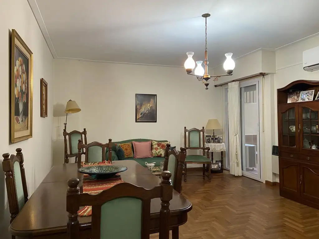 La unidad se compone de: Hall de recepción con placard; amplio Living Comedor con piso parquet, estufa tiro balanceado, aire frío calor y salida al patio; Patio en el pulmón del edificio; Cocina totalmente amoblada, con muebles en alto y bajo mesada, artefacto y calefón ambos a gas, y espacio de Comedor diario; Dormitorio con piso flotante, ventana al patio y amplio placard de pared a pared; Baño completo, con bañera y ventilación natural; Lavadero con salida desde la cocina, cubierto, en un segundo patio ideal para tender la ropa.