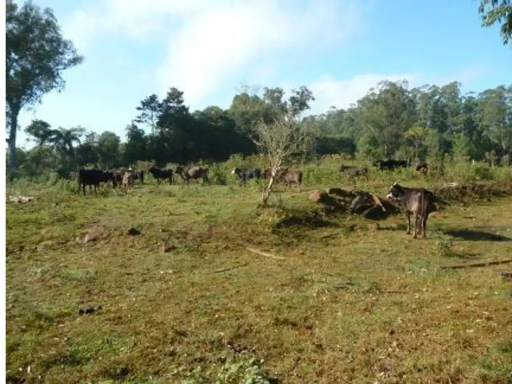 El campode 419 ha se encuentra a la orilla del Rio Parana lindando con Alto Parana y muy cerca de Papel Misionero. Cuenta con un puerto natural sobre el rio Parana. En el tope de colina con vista al rio hay una casa de varias habitación de material. El campo esta distribuido aprox en: 220 has de monte, 30 has de yerbales en recuperación y replandados en 2015, 80 has con malezas altas donde estaba antiguamente un pinar, 5 has de mandarinas con un 87% de fallas, y aprox. 120 has de un piquete ganadero con alambre.