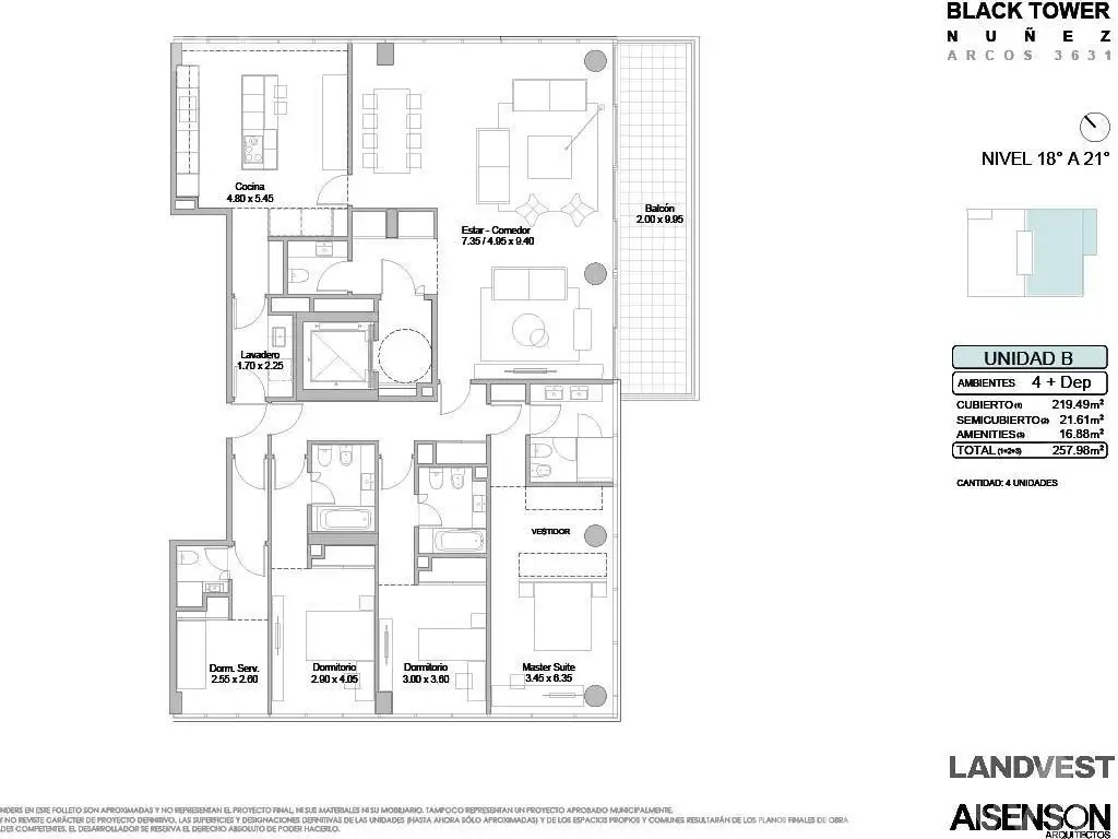 Todas las imágenes, planos, descripciones, y características indicadas son meramente referenciales e ilustrativas y podrán ser modificadas sin previo aviso. Las superficies indicadas son estimadas. Las superficies y medidas definitivas surgirán del plano de mensura final aprobado oportunamente por el GCBA. Las fechas de inicio de obra o posesión son estimadas, podrán ser reprogramadas por la Dirección de obra y dependerán a su vez de un proceso de aprobaciones municipales u otros organismos intervinientes. Los precios indicados podrán modificarse sin previo aviso. El interesado deberá realizar las verificaciones respectivas previamente a la realización de cualquier operación, requiriendo por sí o sus profesionales las copias necesarias de la documentación que corresponda.