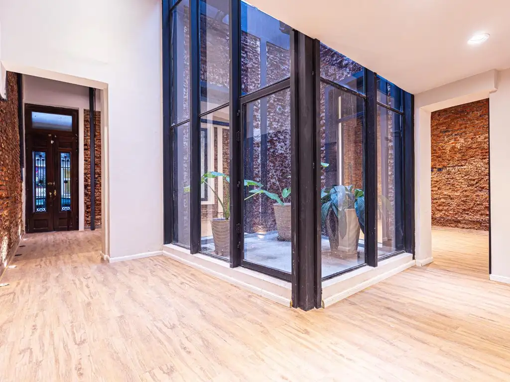 -Planta baja: amplio espacio libre con kitchenette, baño y jardín de invierno vidriado, ideal para proyectar living-comedor con cocina integrada o área de trabajo.