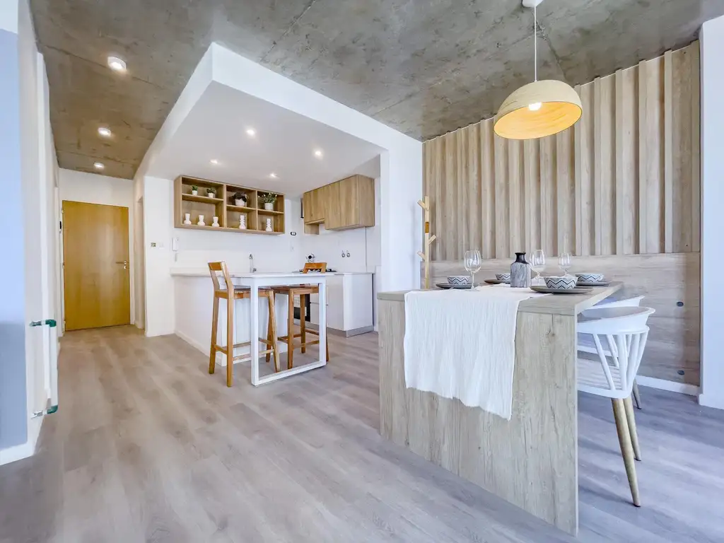 Ubicado en el piso 8, exclusivo. Se ingresa desde el palier a través de una hermosa cocina con amplia barra e integrada al estar comedor, desde el living comedor se comunica con amplio balcón terraza en forma de L con orientación Este- Sur. Desde el espacio de cocina, hacia la derecha accedemos al dormitorio principal en suite, cuenta con baño y vestido. Separados, encontramos los otros 2 dormitorios que comparten otro baño. En el estar comedor cuenta con toilette para invitados.