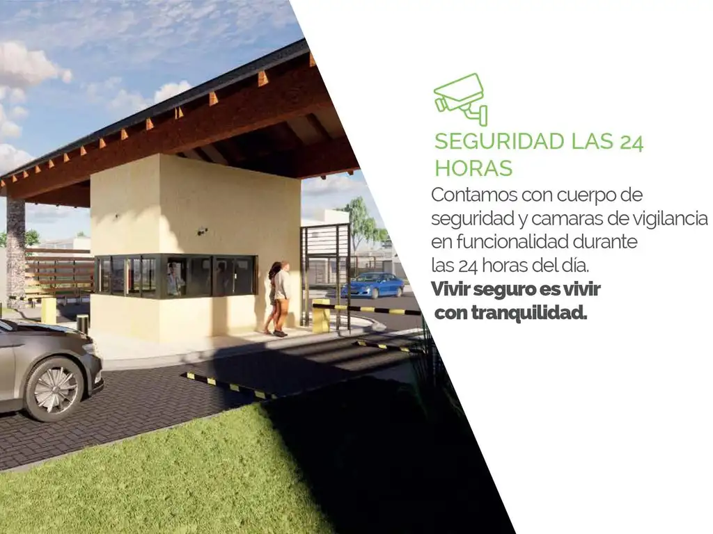 Cuenta con todos los servicios, luz, agua, gas natural, 100% de calles pavimentadas, cloacas, internet por fibra óptica, Seguridad Física privada, ingreso vehicular con garita y control de acceso. Además, el barrio contará con seguridad las 24hs física y electrónica, recolección de residuos, calles de hormigón Inter trabado, área de recreación y comercial.