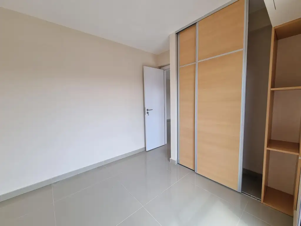 Ingreso por cocina comedor, cuenta con calefón, bajo mesada y alacena de melamina blanco, mesada gris mara y bacha de acero inoxidable y salida al balcón hacia la calle. Hacia el contrafrente se accede al baño con bañera, vanitory y sanitarios de porcelana continuado el vestidor y por ultimo al dormitorio con ventana hacia el patio interno. Los pisos son de porcelanato pulido, los revestimientos de baño y cocina hasta el techo en cerámicos esmaltados.