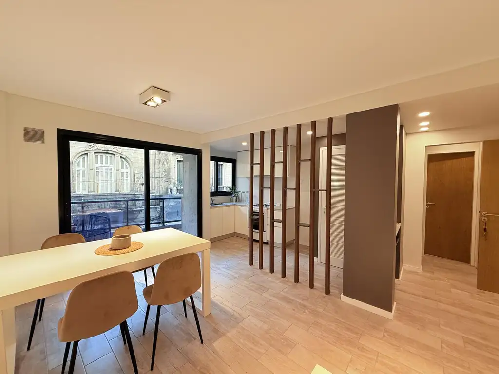 Departamento compuesto por Living-Comedor, cocina semi-integrada. 1 Dormitorio. 1 Baño completo. 1 Balcon. Lavadero