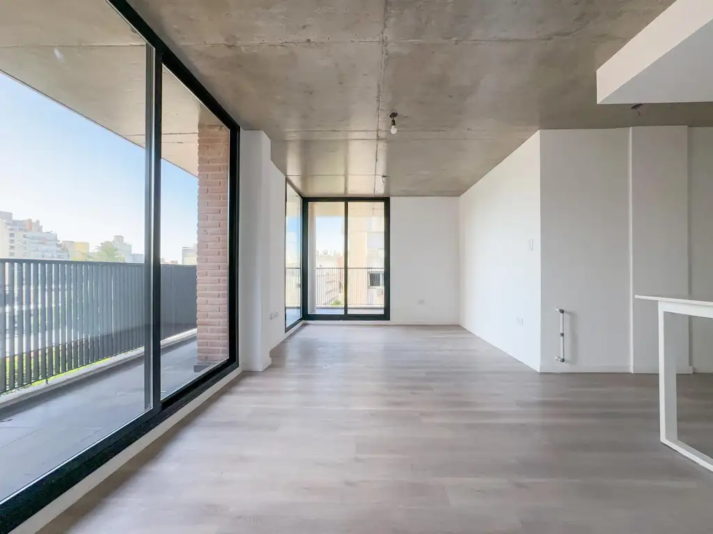 La unidad se encuentra en el octavo piso exclusivo y cuenta con ingreso a living-comedor con pisos de madera flotante y salida a un balcón el L enorme que posee parrillero. Cocina con una amplia mesada en U, muebles bajo mesada, alacenas y espacio técnico para heladera y lavarropas. 1 baño completo con ducha y ventilación natural. 2 Dormitorios secundarios con placard completo. Dormitorio principal en suite con placard completo.