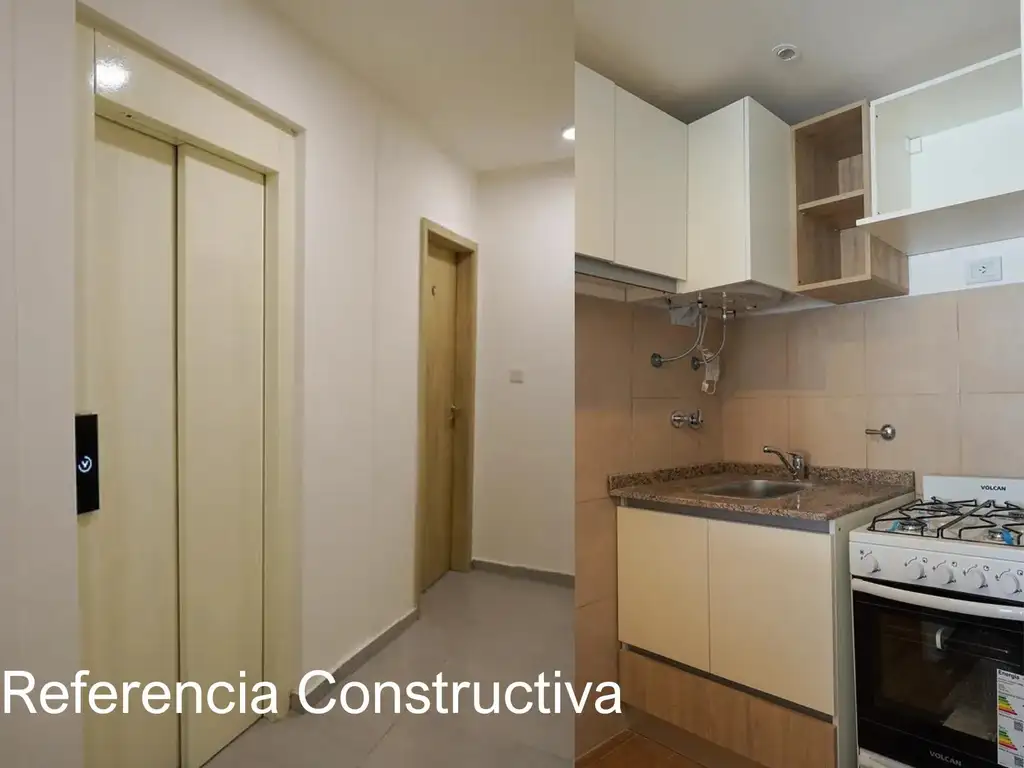 Las unidades cuentan con ingreso a un estar comedor con cocina integrada con alacenas y bajo-mesadas, mesada en mármol granito de 2 cm de espesor pulido, y bacha de acero inoxidable.