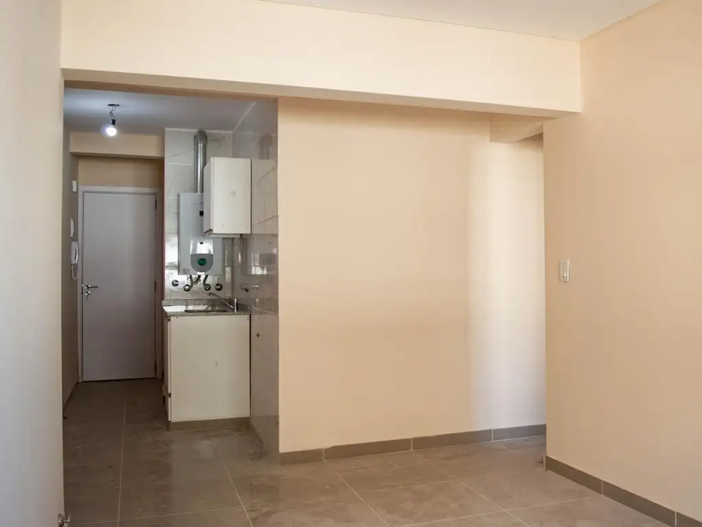 Ingreso por cocina comedor, cuenta con calefón, bajo mesada y alacena de melamina blanco, mesada gris mara y bacha de acero inoxidable y salida al balcón hacia la calle. Hacia el contrafrente se accede al baño con bañera, vanitory y sanitarios de porcelana continuado el vestidor y por ultimo al dormitorio con ventana hacia el patio interno. Los pisos son de porcelanato pulido, los revestimientos de baño y cocina hasta el techo en cerámicos esmaltados.