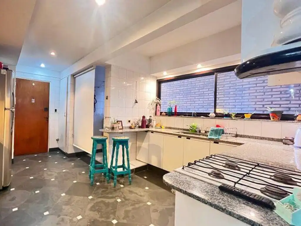 Cuenta con doble ingreso, el principal exclusivo y el de servicio compartido con otro departamento. Desde el principal, accedemos al living-comedor de generosas medidas y salida a un balcón al frente con suficiente espacio para una mesa y sillas. Hacia la izquierda nos dirigimos a la cocina, que cuenta con comedor diario, amplios espacios de guardado y mesada para cocinar. La misma también cuenta con un lavadero semi-separado y acceso a un cuarto que anteriormente funcionaba como dependencia y actualmente se usa como oficina. En el íntimo tenemos tres dormitorios, todos con una muy linda vista despejada, el principal en suite y otro baño también completo.