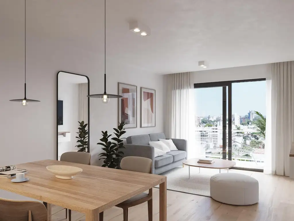 Living comedor luminoso con salida al balcón corrido de 5.7m2, que contara con aberturas con DVH. Baño con revestimiento y piso cerámico de primera calidad. Artefactos sanitarios y grifería de bronce cromada de primeras marcas. Vanitory con bacha y espejo. Dormitorio con salida al balcón corrido y frentes placares con hojas corredizas en melanina y terminaciones laterales en aluminio. Interior con cajonera, colgador y estantes.
