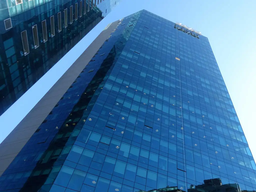 Su fachada es íntegramente vidriada con paneles DVH, haciendo que se destaque por ser un edificio muy luminoso en todos sus niveles. Cuenta también con increíbles vistas panorámicas a toda la Ciudad y al río.
