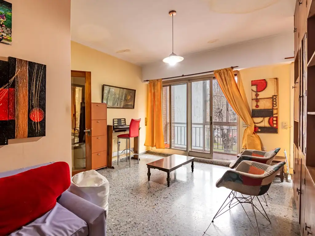 Arriba, por escalera desde el garage o desde el local está la casa de nobles mateariales con vista a la Av. Arana por el balcón ahora semicerrado que ilumina el living y el comedor, conectado con la cocina a través de una barra desayunadora. Atrás, el patio abierto que sirve de iluminación y ventilación también a la cocina y a la menor de las habitaciones a través del pasillo. Mientras que al contrafrente con ventanas a la terraza, están las habitaciones principales con baño cada una.
