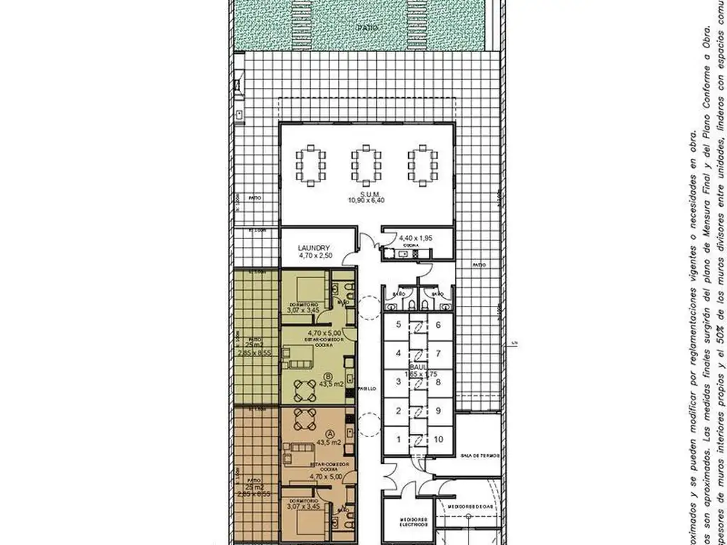 Nota: Las medidas, cotas surgen del plano de obra y fueron proporcionadas por el Desarrollador y son meramente ilustrativas, pudiendo variar en el proceso de construcción, siendo las definitivas, aquellas que resulten del final de obra y la posterior subdivisión. Los m2 que surgen del plano de obra sufrirán desvíos respecto del plano catastral definitivo dado que serán descontados los muros y paredes. La memoria y descripción técnica han sido proporcionadas por el Desarrollador, la cual, puede sufrir modificaciones sin previo aviso. Los bocetos, renders, imágenes , esquemas distributivos, planos e ilustraciones son meramente orientativas. La descripción del inmueble, fotos, expensas, impuestos, servicios y medidas son aproximadas. Las mismas serán corroboradas con la documentación pertinente.
