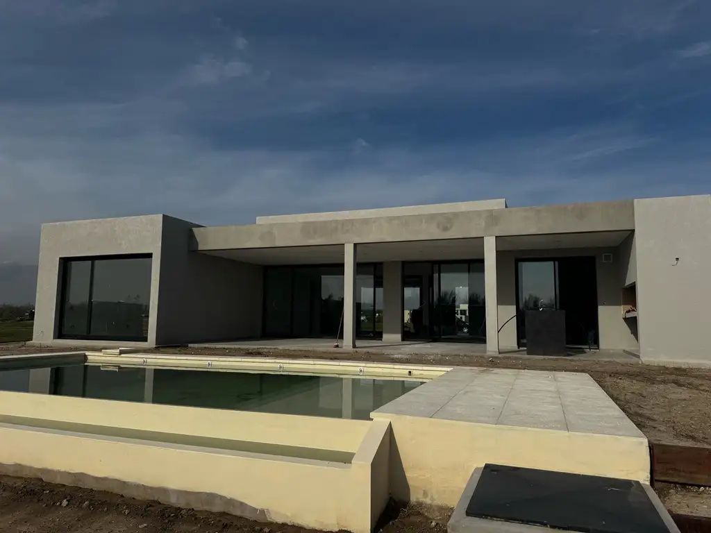 Cuenta con un amplio living-comedor con cocina integrada, ventanales de piso a techo que conectan la galería cubierta con parrilla, el jardín y la piscina con salida directa al río.