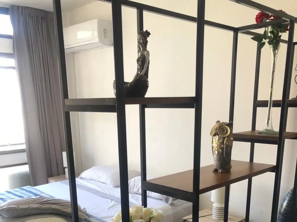 El departamento es al frente,muy luminoso y aireado. El ambiente está separado x una linda y moderna biblioteca abierta que da amplitud.El sector de dormitorio tanto como el de living que cuenta con cocina integrada están totalmente equipados.