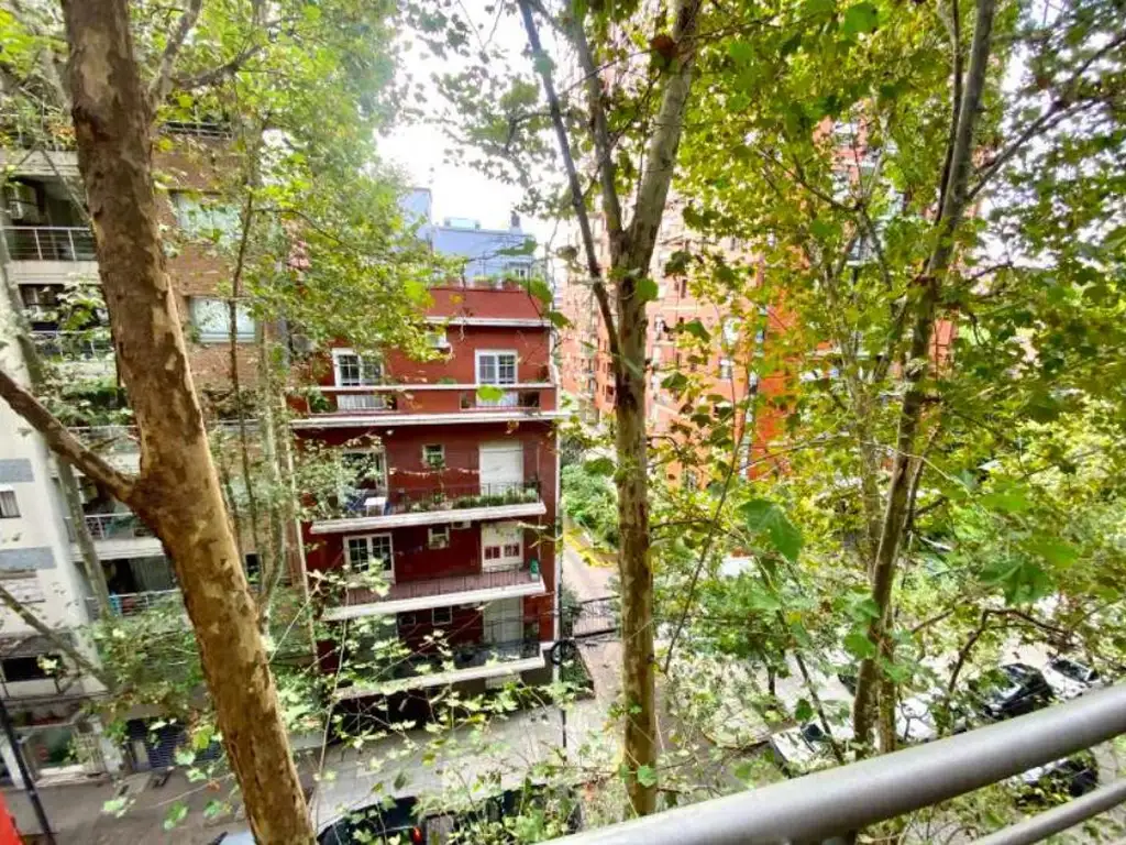 Muy luminoso al frente con balcón y vista a copa de árboles.