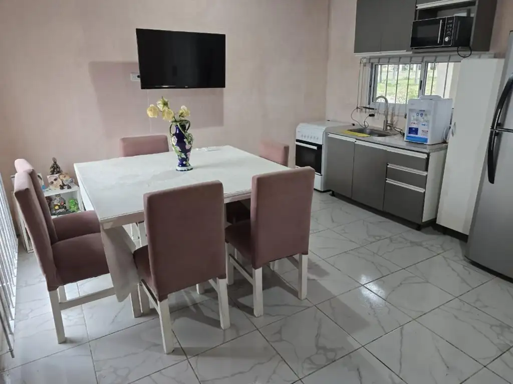 Se vende casa de 3 ambientes totalmente amoblada sobre lote de 300 m2 en Fincas Don Eugenio 2, un barrio ubicado en General Rodríguez a 40km de Capital Federal por acceso Oeste hasta RN 6.