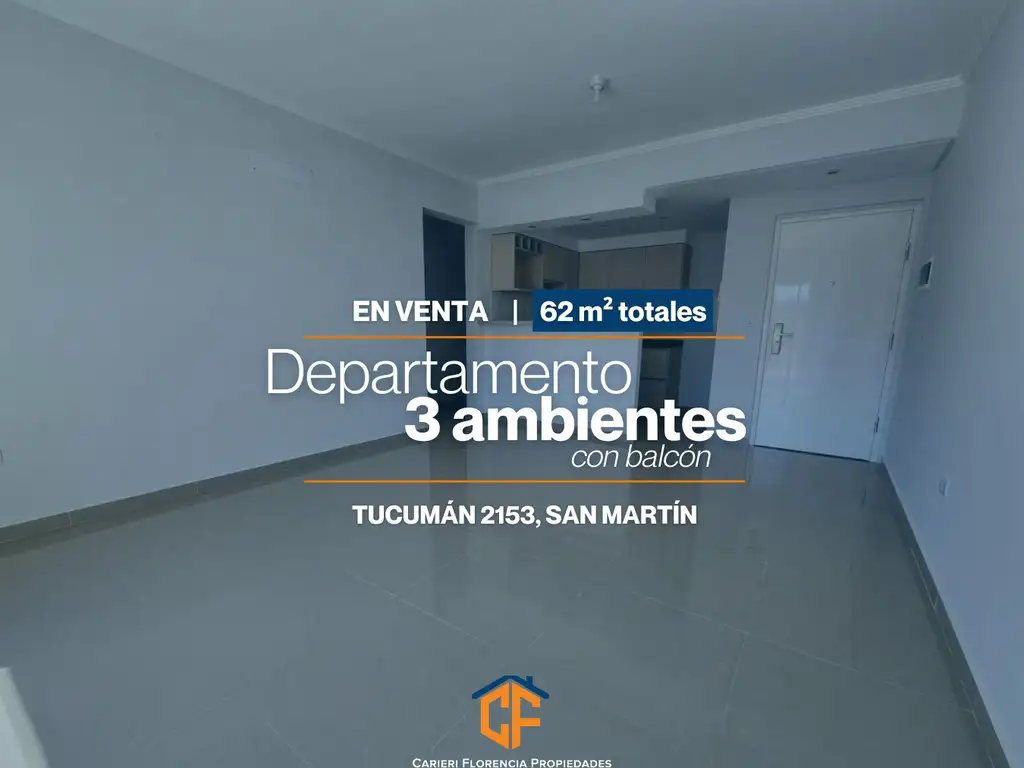 Mirá este departamento 3 ambientes, disponible para la VENTA, de 62m² totales que combina modernidad y luminosidad en cada rincón.