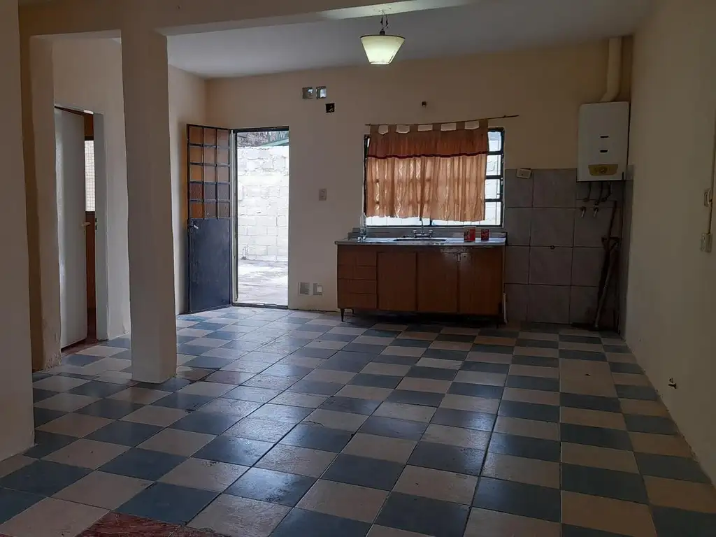 Casa al frente, con ingreso por un living comedor con cocina integrada.