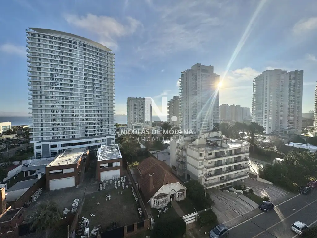 Unidad en venta en piso alto con linda orientación solar para vivir todo el año. Amplio apartamento cuenta con living comedor con salida al balcón con vista al mar y hacia la Península. Dos dormitorios , dos baños , principal en suite. Garaje en subsuelo.