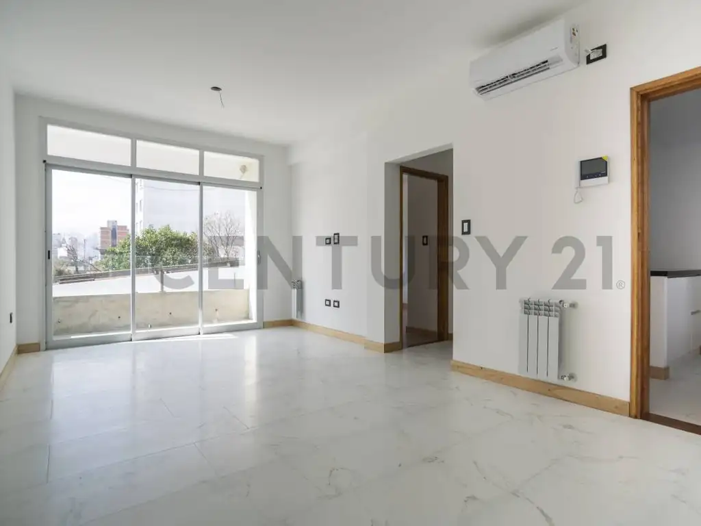Departamento de un dormitorio con balcon, emplazado al contrafrente. Construcción con detalles de categoría y estilo minimalista: pisos y revestimientos de porcelanato, carpinterías de Aluminio con DVH (doble vidriado hermético), calefacción por radiadores en todos sus ambientes, equipo de aire acondicionado instalado.