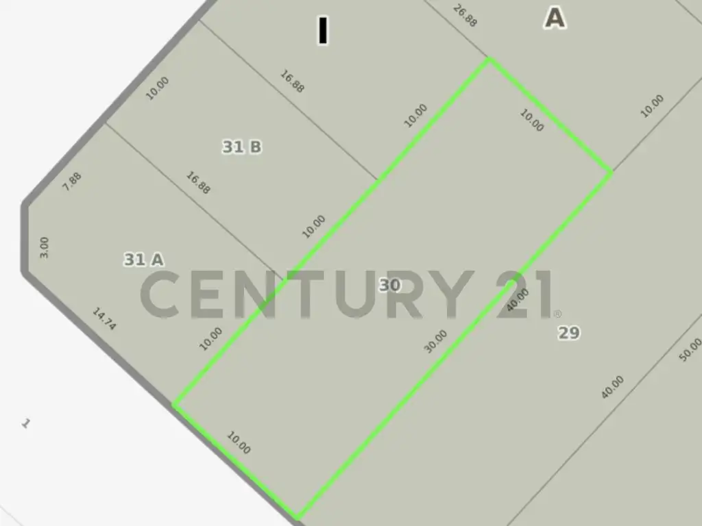 Lote de 10 m de frente por 30 m de fondo a la venta, lo que hace un total de 300 m2. todos los servicios. zonificación U/C3.