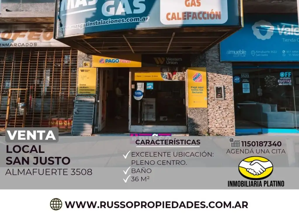 Excelente local comercial de 36 m² ubicado en pleno centro de San Justo, ideal para distintos rubros.