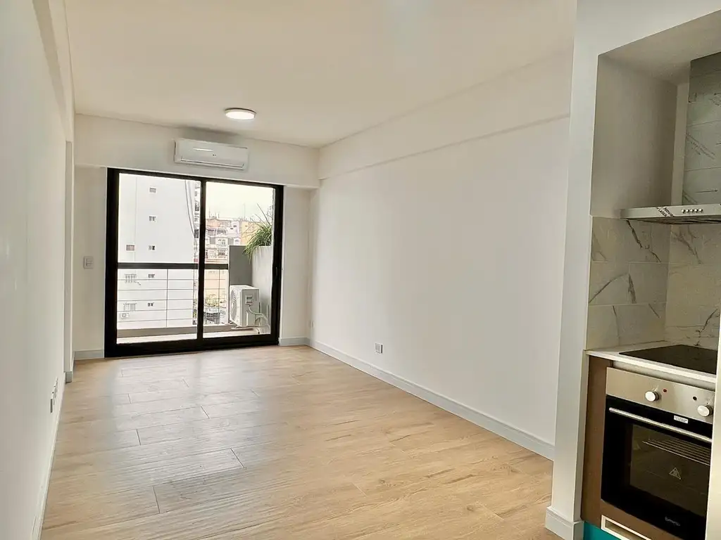 Se trata de un monoambientes muy cómodo y luminoso, con casi 31 m2 totales, ambiente amplio, ideal para dividir, baño, cocina americana con artefactos de primera calidad y living-comedor con salida hacia el balcón con vistas abiertas.