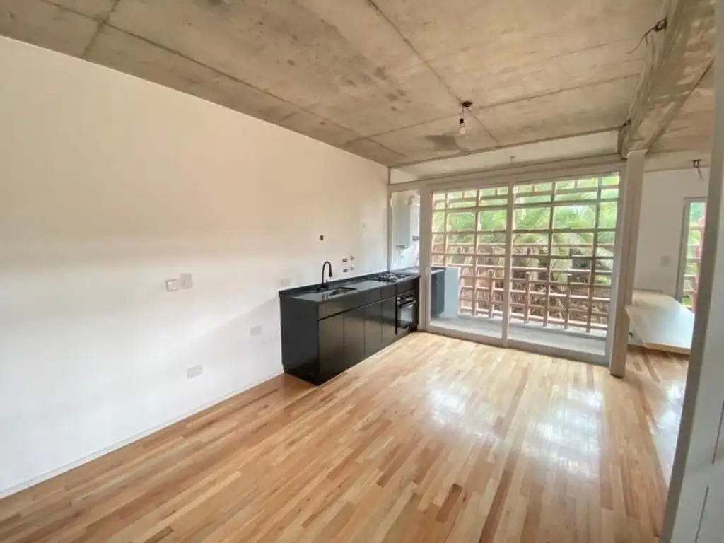 Cuenta con cocina equipada con muebles bajo mesada integrada al living comedor, un dormitorio con gran placard empotrado y un baño completo.