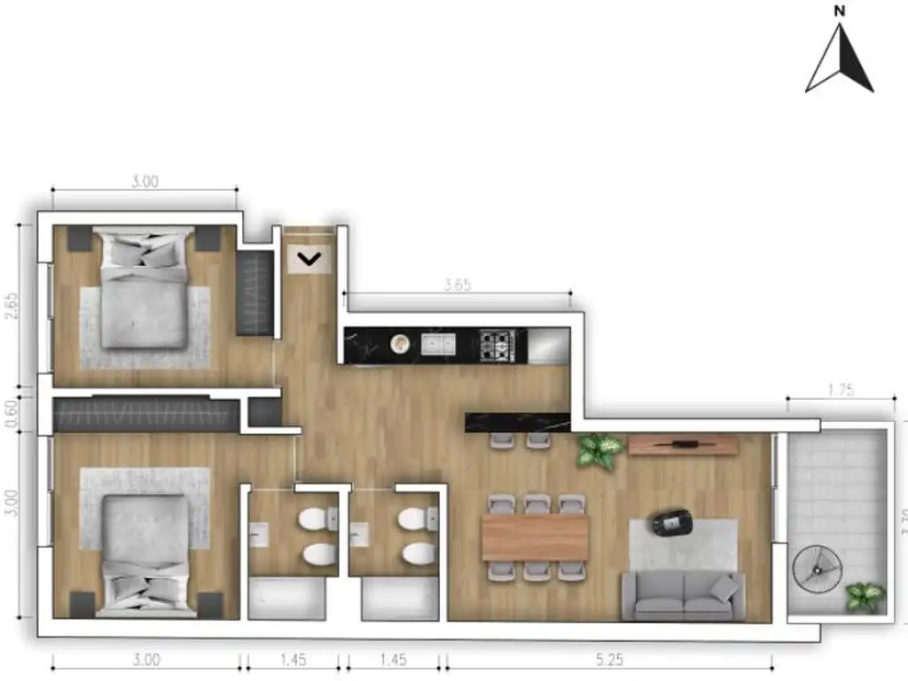 - 2 dormitorios