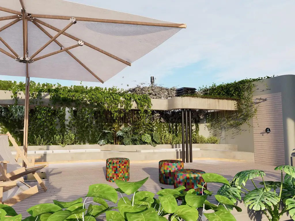 Entre los amenities destacados se incluyen un gimnasio totalmente equipado con máquinas profesionales, aire acondicionado y piso vinílico elástico; un SUM con mobiliario completo, cocina, climatización y conexión directa al exterior mediante aberturas corredizas; laundry con lavadoras y secadoras automáticas; plaza seca en la azotea con mobiliario ideal para momentos de relax; cocheras cubiertas con sector para bicicletas; y un local comercial con frente vidriado en planta baja.