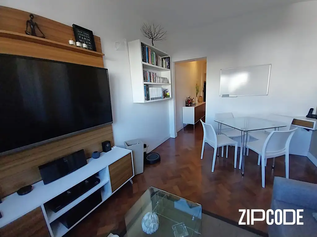 El departamento se accede por un hall, que a su vez se puede usar como escritorio ya que tiene generosas dimensiones. Luego se ingresa al living / comedor que cuenta con una gran ventana (D.V.H.) que da al frente con vista a las copas de los árboles, aire acondicionado Split frío /calor