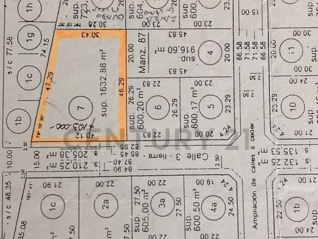 Calle 3 e/ 500 y 501. Lote de 1633 mts.2 aprox.