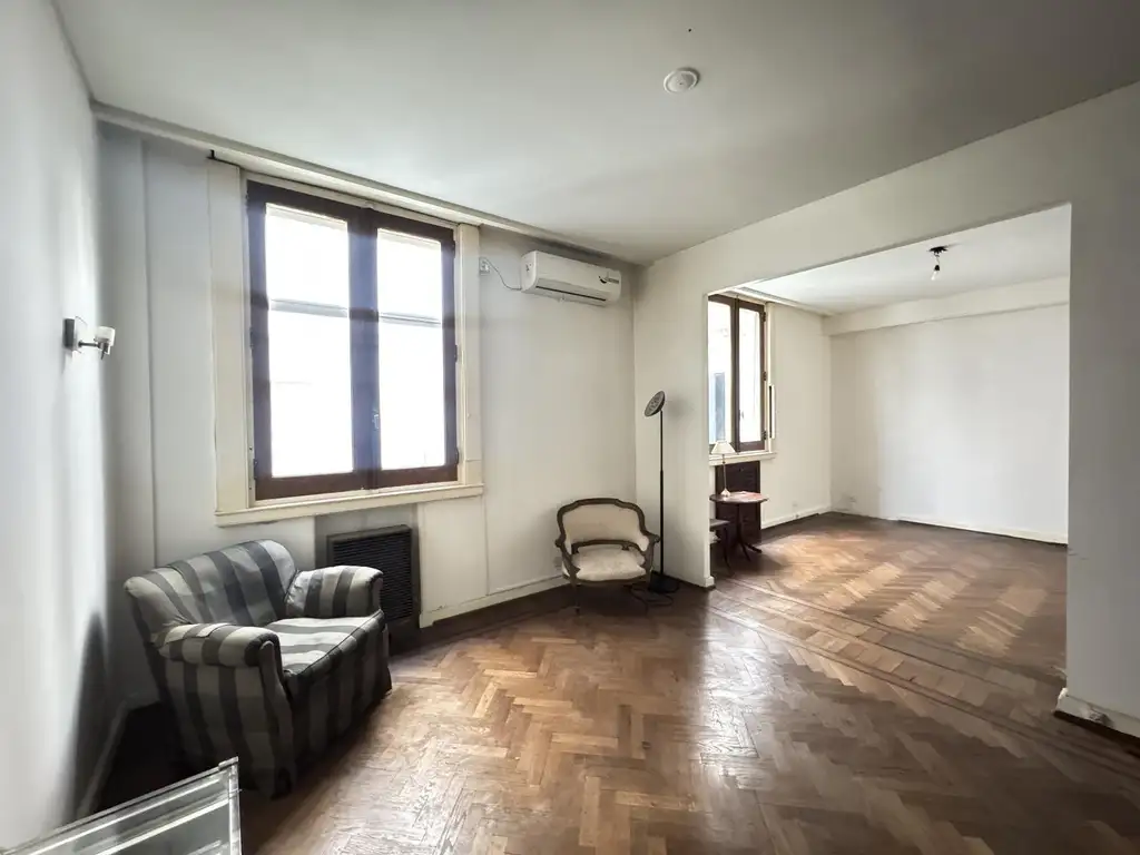 Este departamento se encuentra ubicado en la planta baja de un hermoso y conservado edificio, el mismo cuenta con: 2 habitaciones (Actualmente 1 esta integrada con el Living) , mas habitación de servicio con un amplio Baño, living comedor, cocina completa, Comedor Diario, baño completo, amplio y luminoso patio.