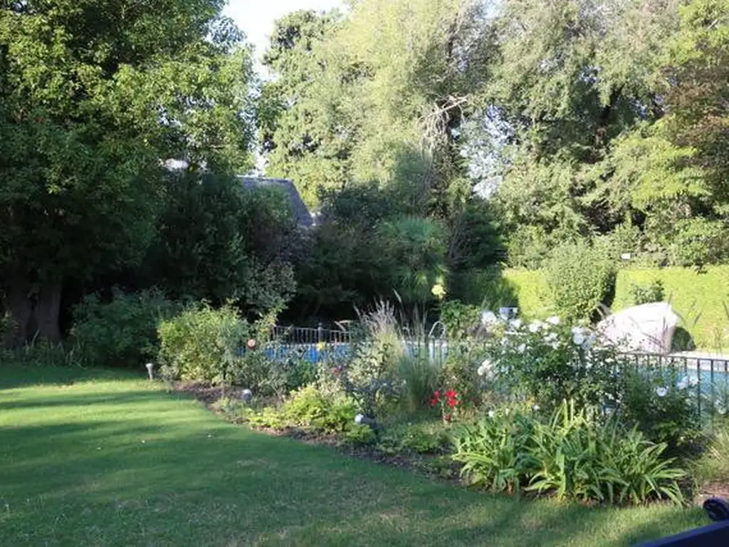 Jardín con gran pileta, muy buen pulmón de manzana y sistema de riego por aspersión.