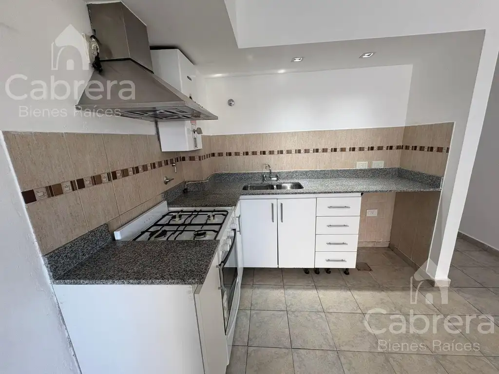 Cocina integrada al living comedor, con aire acondicionado