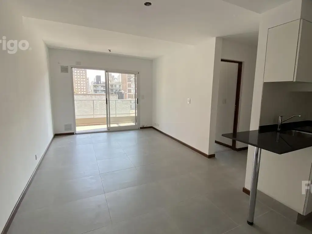 1 dormitorio al contrafrente con terraza exclusiva. Los mismos están compuesto al ingreso por estar comedor con cocina integrada equipada completa con bajo mesada alacena y barra. Dormitorio con placard. Baño completo con bañera. Orientación Sur. 80.30m2 totales, 33.50m2 sup descubierta.