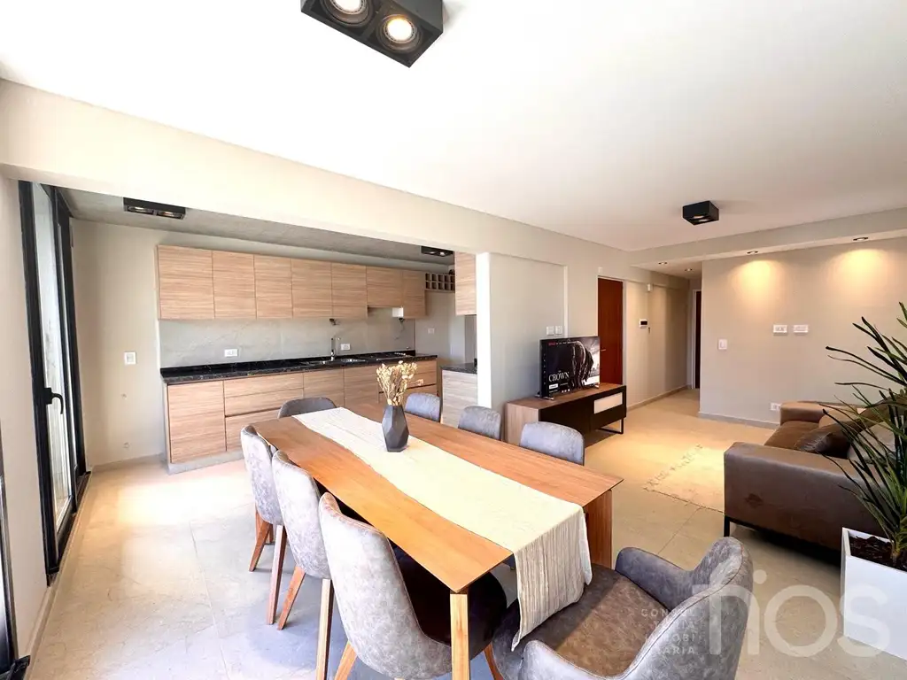 El departamento ofrece un estar comedor de generosas dimensiones, bañado por luz natural y con salida directa a un amplio balcón aterrazado. La cocina, semi integrada, se presenta como un espacio funcional y moderno, equipada con horno y anafe diferenciados, bacha de acero inoxidable sobre mesada de granito, alacenas superiores e inferiores, y conexiones eléctricas estratégicamente ubicadas para electrodomésticos. Uno de los grandes diferenciales de esta unidad es su ventilación cruzada, gracias a sus dos balcones, uno al frente con orientación oeste y otro al contrafrente con orientación este, que aseguran luminosidad y circulación de aire en todos los ambientes.