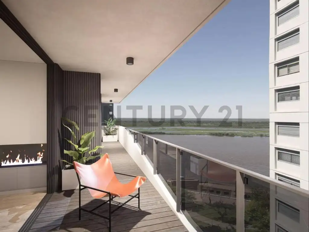 Piso exclusivo con amplio balcón al frente — orientación Este — y vista parcial al río.