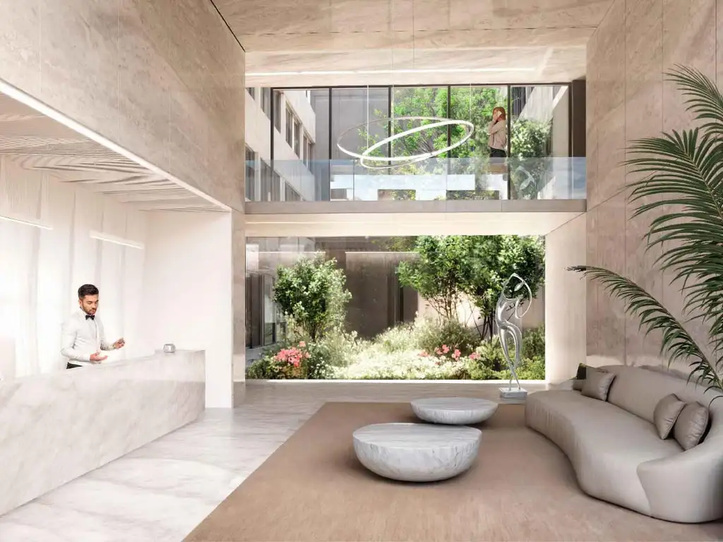 * Ambiente principal: área abierta tipo estudio o monoambiente con espacio para escritorio, cama o living. Ventana hacia el patio interno.
