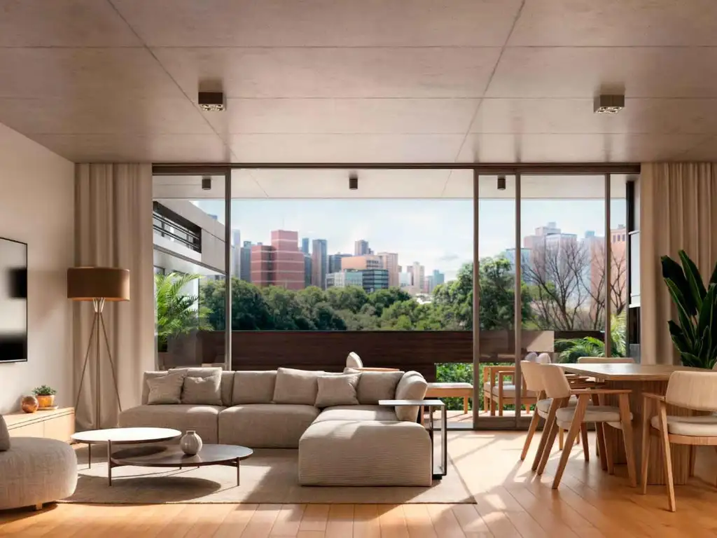 Es un diseño típico de departamento moderno de un dormitorio , con buena ventilación y un sector social amplio.