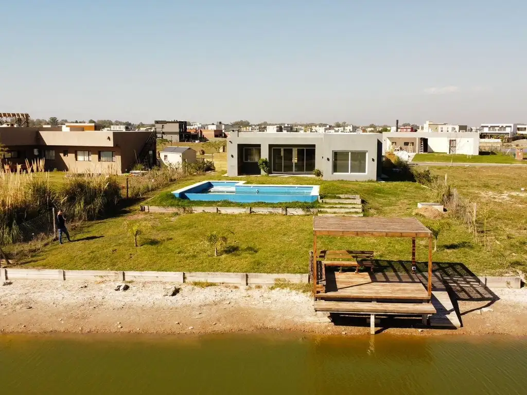 Exteriores: Galería, parrilla, piscina con cerco reglamentario y muelle al lago.