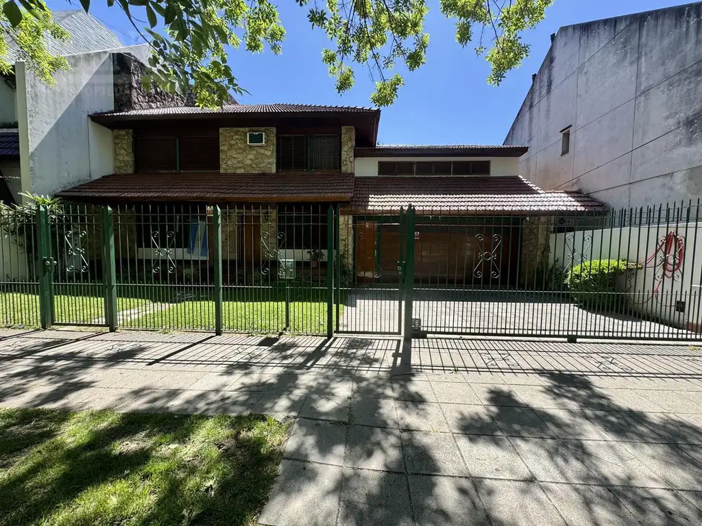 PB: Este cuenta con jardín al frente con rejas, entrada para dos autos en paralelo, 4 cocheras 2 cubiertas y dos descubiertas. Amplio living comedor con hogar a leña y A/C, super luminoso con grandes ventanales al frente y al contrafrente, escritorio, toilette, cocina con barra y comedor diario, muebles bajo y sobre mesada, horno empotrado e instalación para lavavajillas, aire acondicionados, acceso por escalera al altillo, lavadero, patio, jardín y quincho con parrilla y habitación de servicio con baño completo y cuenta con 4 puertas blindadas.