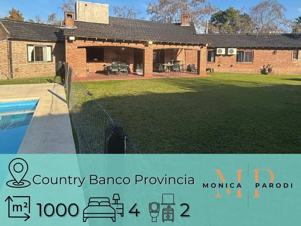 Esta propiedad se encuentra dentro de uno de los countries más reconocidos de la zona oeste, caracterizado por su entorno verde, la tranquilidad y la seguridad permanente. El Country Banco Provincia ofrece vigilancia las 24 horas, amplias áreas comunes, canchas deportivas, club house, actividades recreativas y un entorno familiar ideal para quienes valoran la calidad de vida.