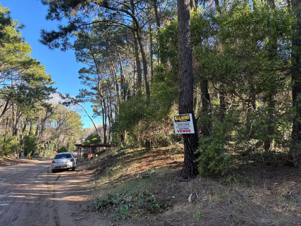 Se vende excelente lote en zona centro de Mar Azul, en altura, nivelado, esquina, forestado con pinos, apto vivienda o comercio. Se escuchan ofertas.