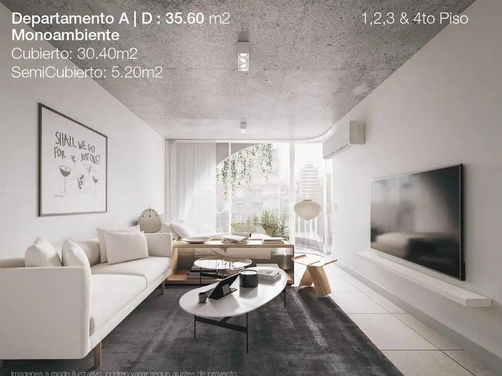 La unidad se desarrolla al contrafrente y ofrece un diseño funcional y luminoso. Cuenta con cocina completa integrada, equipada con muebles bajo mesada y alacena, separada del ambiente principal por una práctica barra desayunadora.