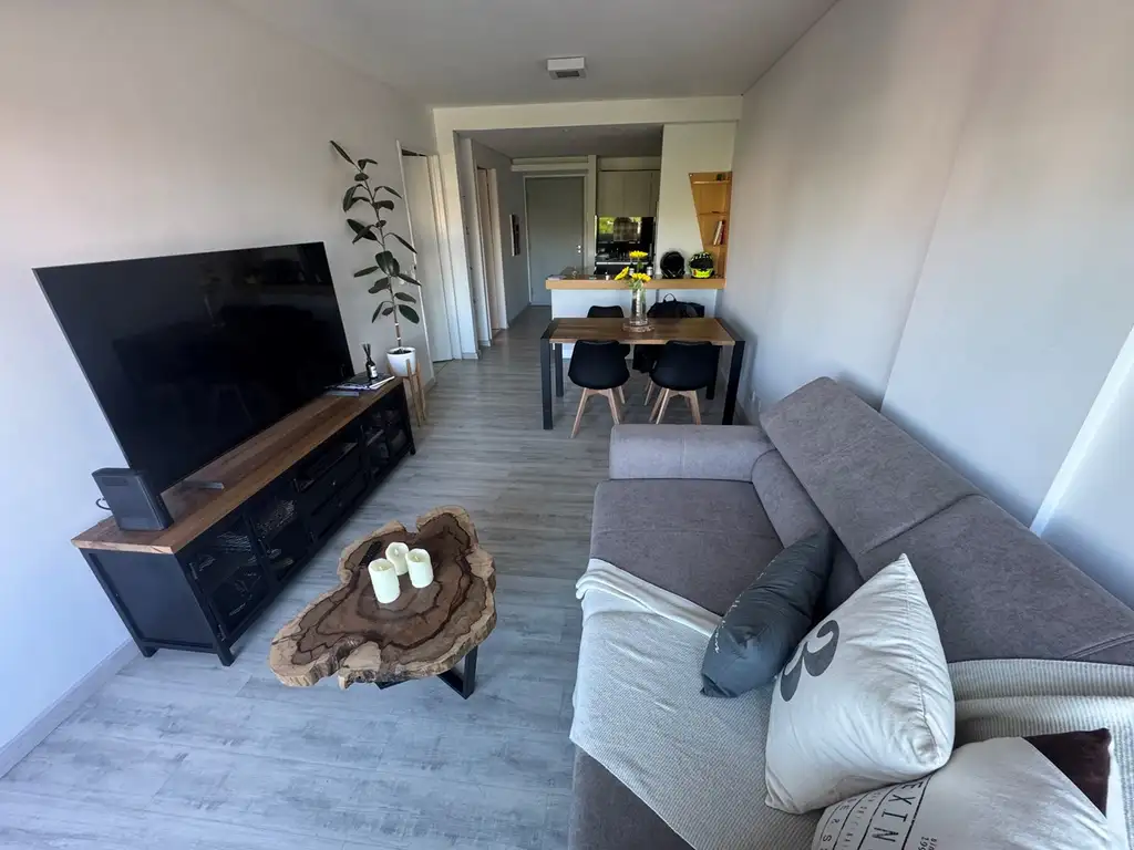 HALL, LIVING COMEDOR CON BALCÓN, TOILETTE, COCINA AMERICANA CON BARRA, DORMITORIO EN SUITE CON PLACARD. COCHERA CUBIERTA.
