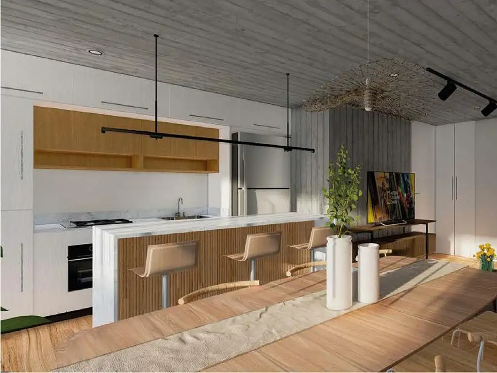Ingreso por amplio living comedor con cocina semi separada por una barra. Salida a un balcón al frente con orientación Norte.
