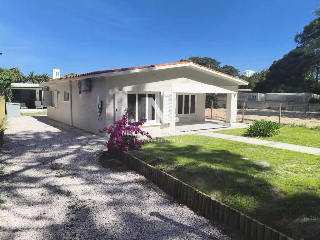 La casa esta construida en 2 bloques. Adelante tiene la casa habitación con 3 dormitorios y dos baños, y al fondo la barbacoa. Aloja 6 a 8 personas con comodidad.