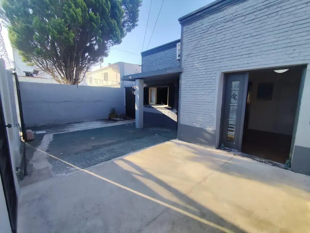A la propiedad del frente podemos ingresar por un ambiente con aire acondicionado, pisos de pinotea y placard empotrado (anteriormente funcionaba como dormitorio, podría adaptarse nuevamente si se quisiera.)